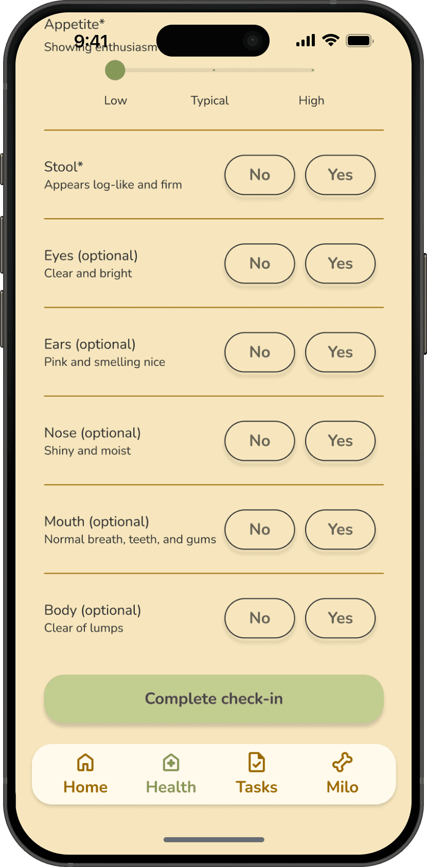 While owners are motivated to be proactive about their dog's health, current digital apps require attaching health observations to predefined events, adding friction to quick check-ins.